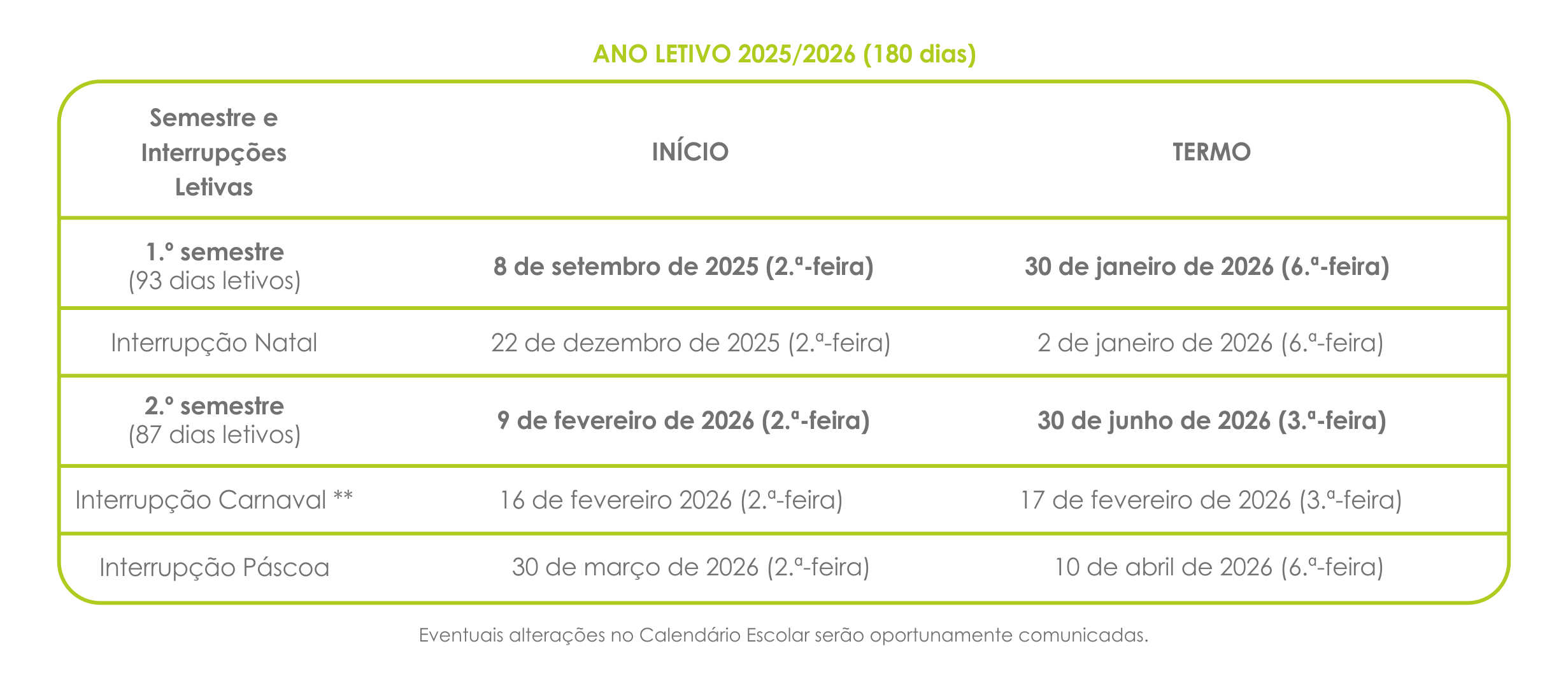 Calendário Escolar